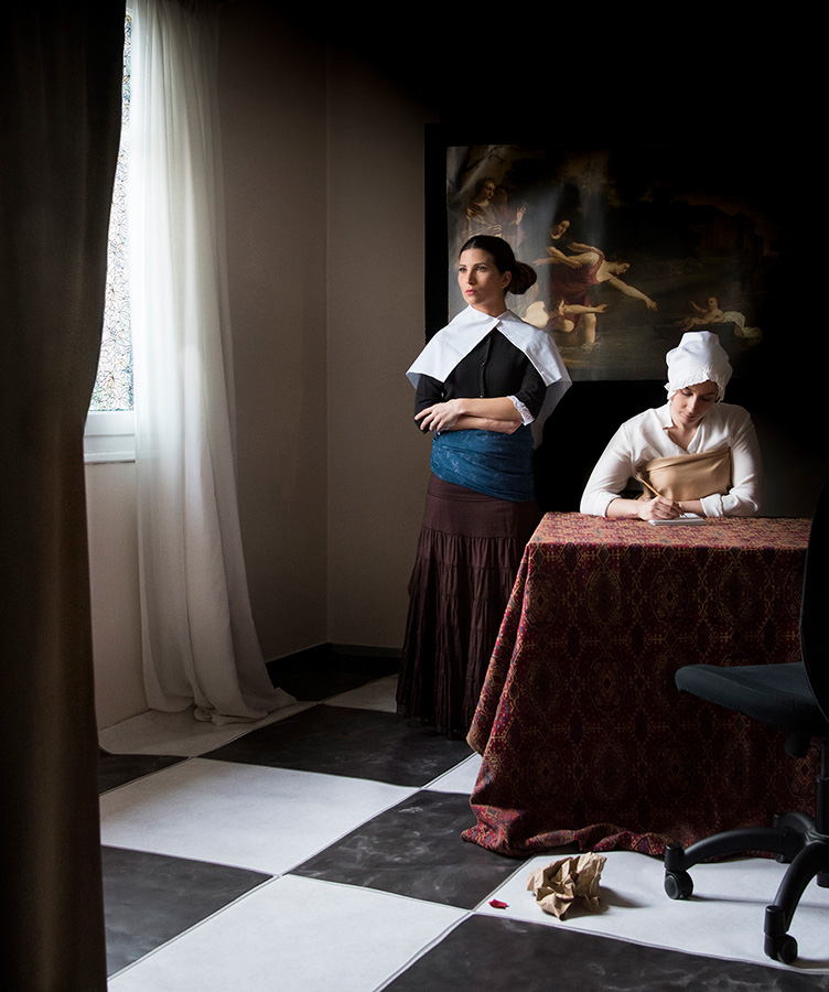 "فرانسیسکا جیازوگلا" francesca giaitzoglou، عکاس جوان یونانی می گوید این عکس یکی از پنج عکسی ست که بر اساس تابلوهای "یوهانس ورمیر" خلق کرده ام. در هر تصویر یک شی ء مدرن انتخاب و اضافه شده است.