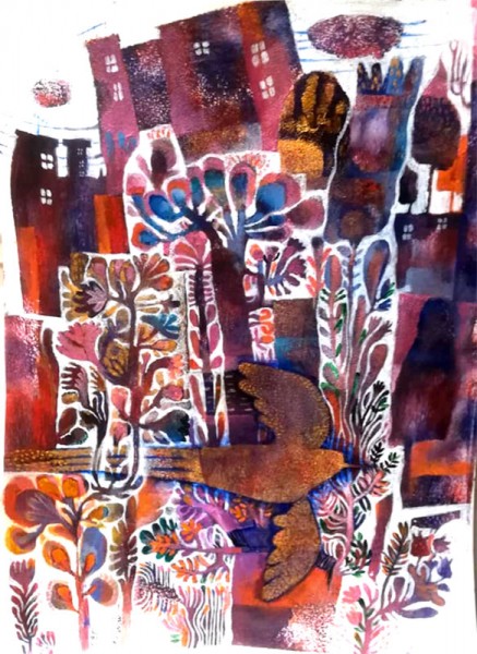 کتاب شعر بود. عروسک قشنگ من قرمز پوشیده. فکر میکردم کاری خارقالعاده خلق کردهام. البته با متن ارتباط خوبی داشت، اما تصاویر بسیار شلخته بود و رنگها چرک (به تمام هنرجویان توصیه میکنم که هرگز برای اولین کار حرفهایشان از اکولین استفاده نکنند.) این اکولین خوش آب و رنگ و به تجربه کم آن روزگارم مهارنشدنی بود که موجب شرمساریام شد و البته چه خوب که انتشارات قبل از چاپ کتابم منحل شد. آن کتاب و تصویرهایش همراه ناشر دود شدند و حتی هوایشان را هم پیدا نکردم ... نه، راستش نخواستم که پیدا کنم. ولی اعتراف میکنم به خاطر ذهن رویابافم کارم خیالانگیز بود و ازین جهت قابل دفاع.