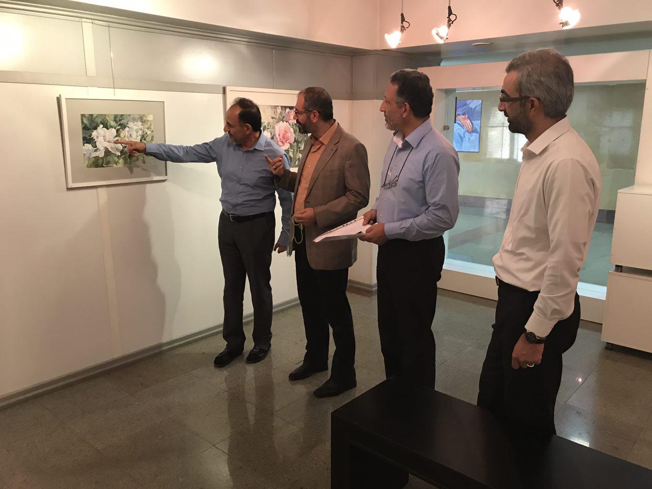 بازدید مدیران حوزه هنری از نقاشی های آبرنگ کامیار صادقی