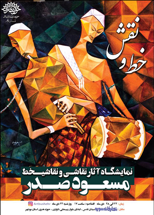 نمایشگاه آثار نقاشی و نقاشیخط استاد مسعود صدر به همت حوزه هنری استان بوشهر و برگرفته از فرهنگ و آیین بومی این استان در نگارخانه سوره افتتاح شد.