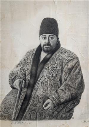 عنوان اثر : تکچهره میرزا عبدالوهاب خواجه نوری (نظامالملک) سیاهقلم و پرداز روی کاغذ